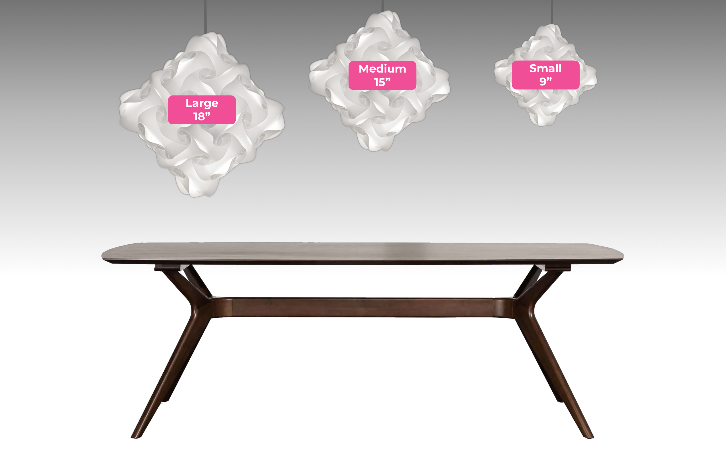 - For suspension (hooked or hardwired) or for tables or nightstands