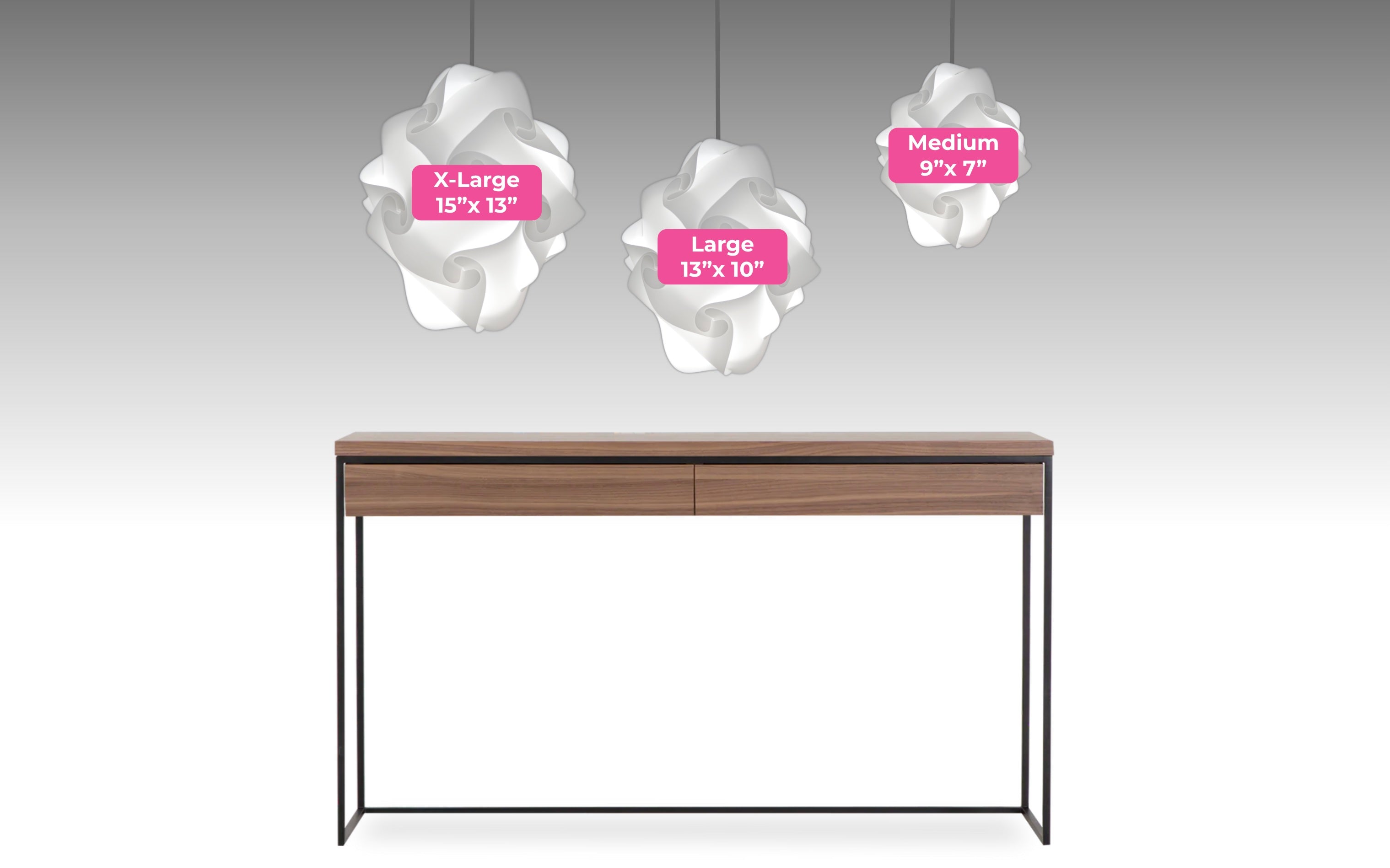 - For suspension (hooked or hardwired) or for tables or nightstands