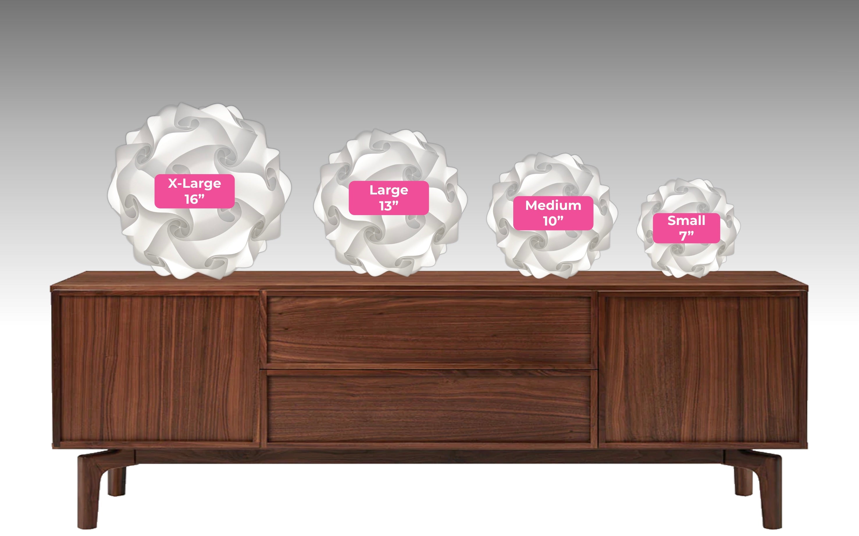 The Sphere Lotus Lamp is offered in your selection of 3 colors as a pre-assembled lamp. Personalize your Lotus lamp by clicking on the Customize button below and choose your desired colors, lamp size, 15 ft electrical cord color and light bulb.